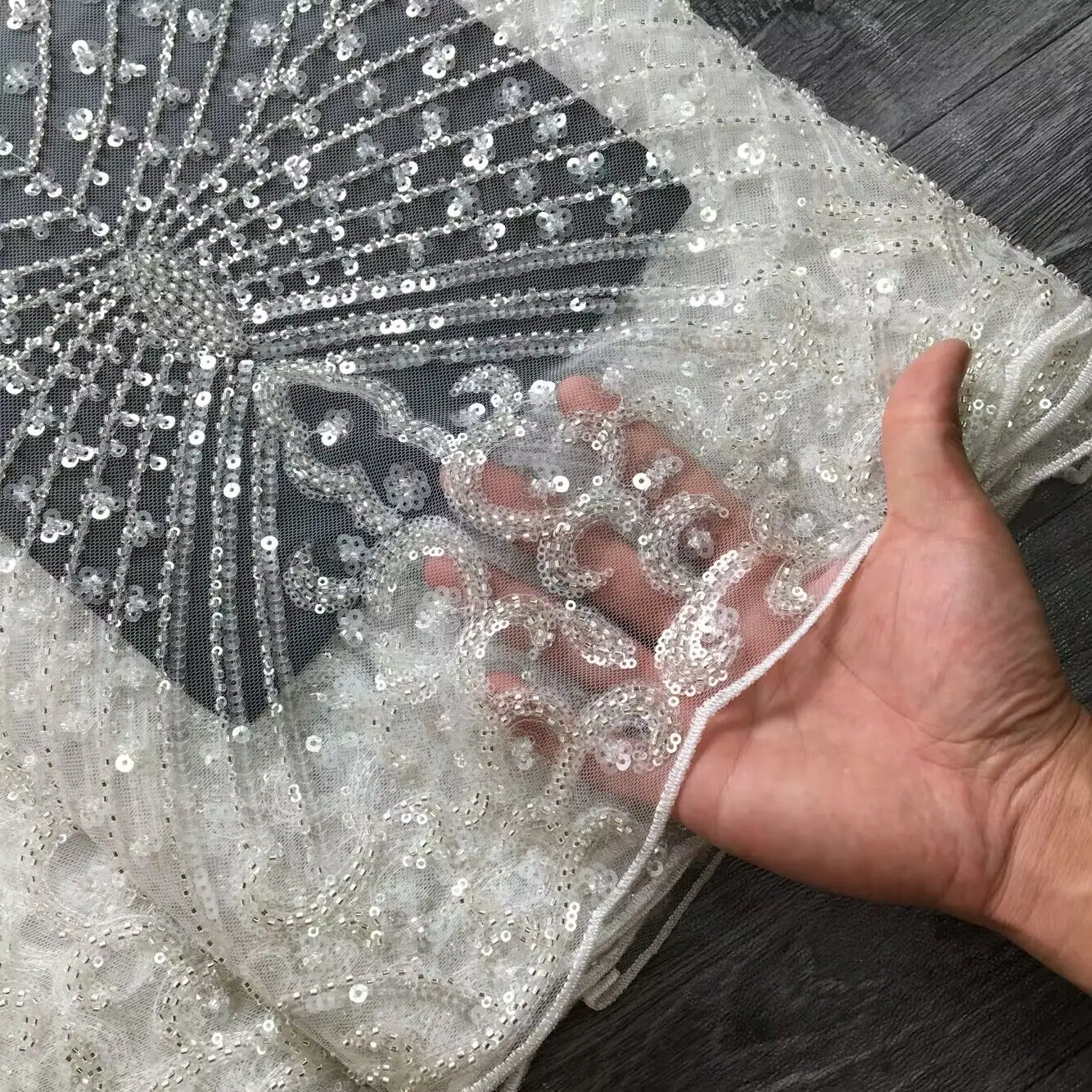 Elevate your wardrobe creations with this High-Quality African Sequin Lace Fabric, a stunning choice for crafting exquisite dresses. Designed from 100% eco-friendly polyester, this embroidered lace fabric combines intricate beadwork and sequins to create a glamorous and elegant look. Its wide mesh fabric design, at 51-52 inches, ensures versatility, whether you’re designing wedding dresses, prom gowns, or stunning party attire.