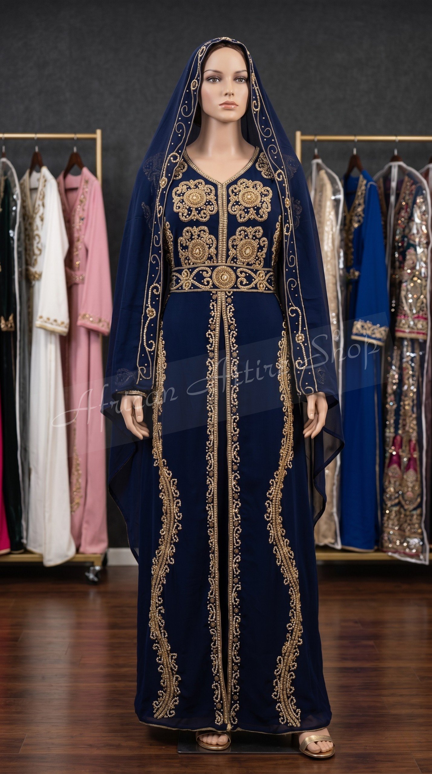 | Product Name | Navy Blue Kaftan Dress Moroccan Wedding Gown | |