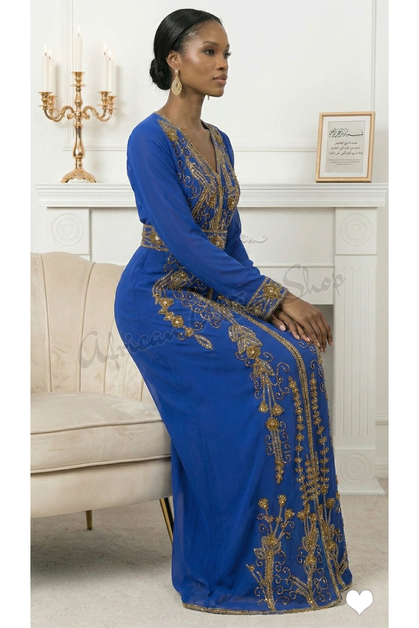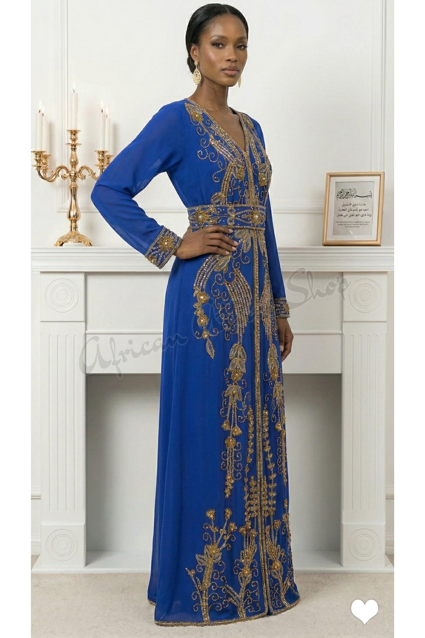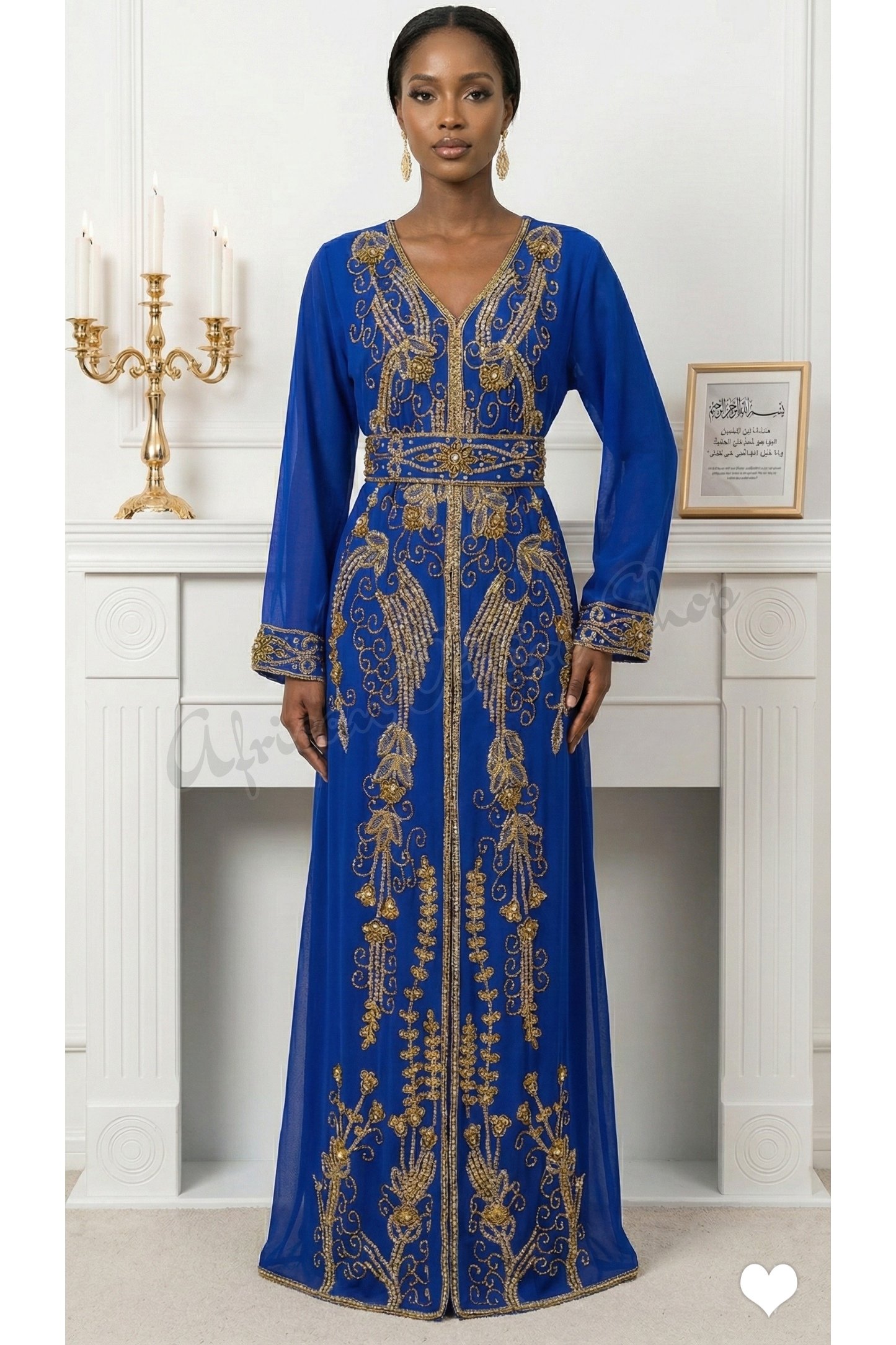 | Product Name | Royal blue Moroccan kaftan with gold embroidery | |