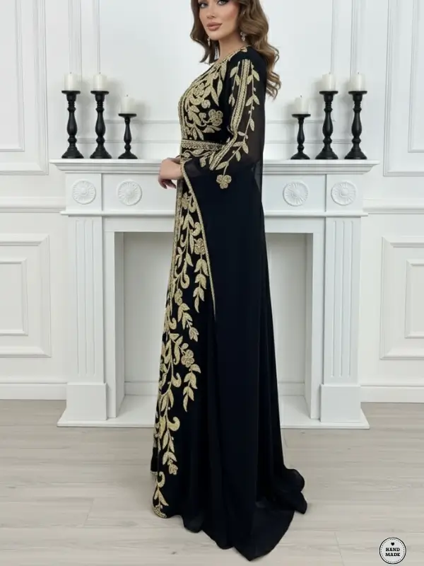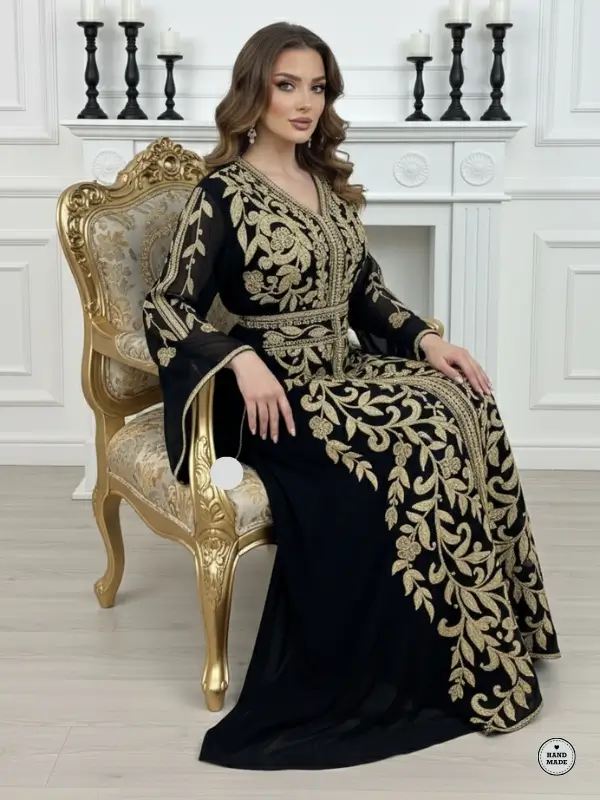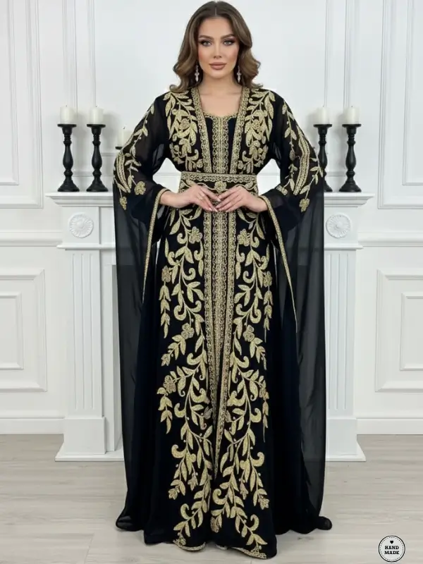 | Product Name | Black and Gold Hand-Embroidered Moroccan Kaftan Dress | |