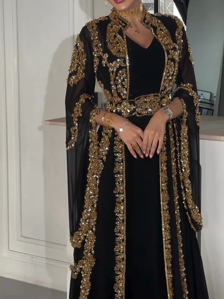 | Product Name | Luxury Black & Gold Hand Embellished Moroccan Kaftan | |