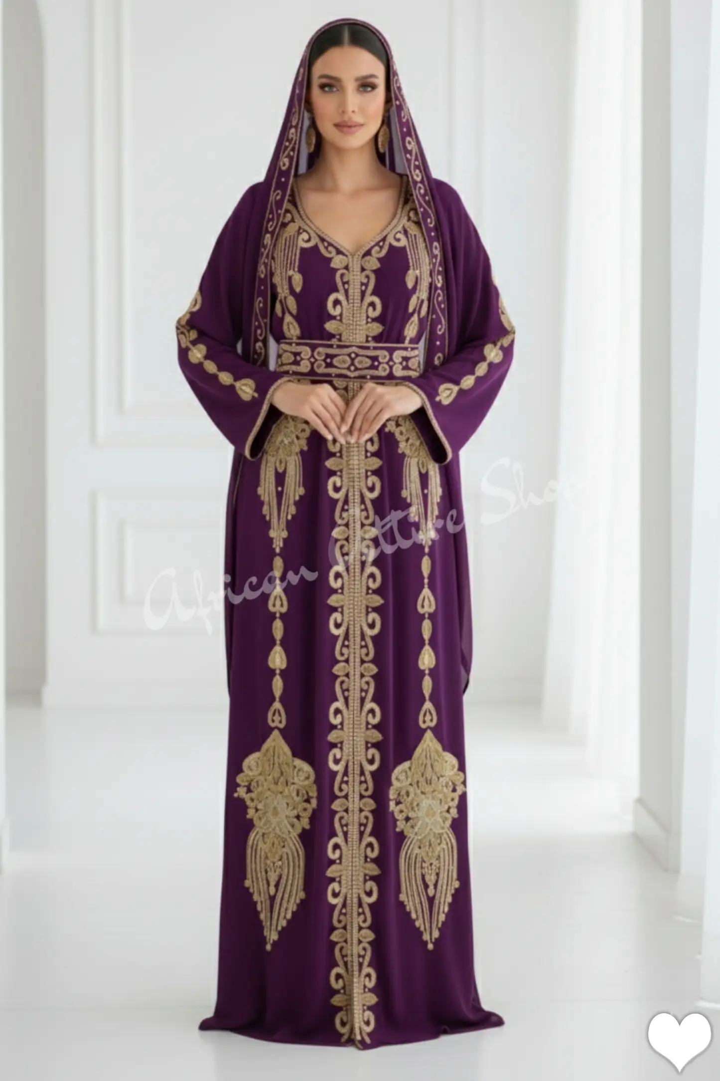 Whether you are looking for an authentic Muslim wedding outfit, a standout Eid dress, or sophisticated attire for a formal evening, this kaftan delivers unparalleled luxury. The set includes a matching sheer hood or shawl, completing the majestic look. Available in a range of sizes, embrace the opulent beauty and cultural heritage of Morocco. Shop this stunning Dubai Abaya style maxi dress today and own a piece of high-fashion tradition.