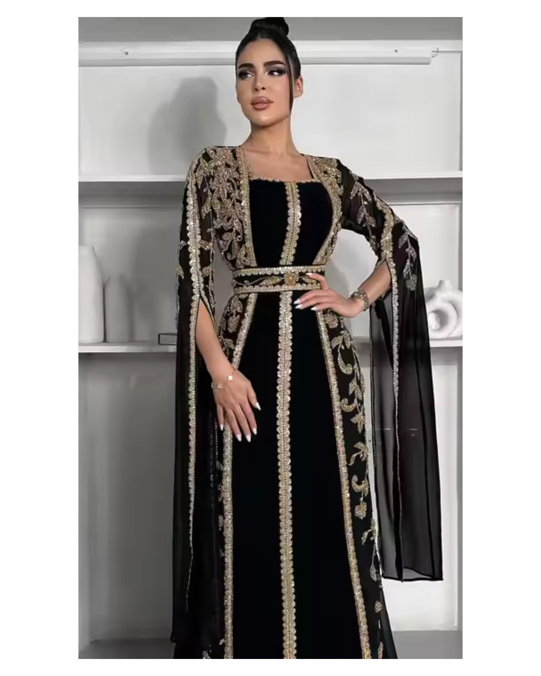 Whether you’re the bride, a wedding guest, or attending a formal soirée, this kaftan is made for unforgettable entrances. It’s a celebration of tradition and luxury—elegant, timeless, and utterly stunning.