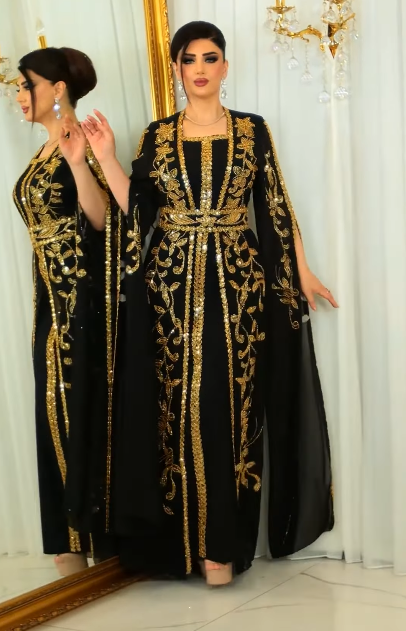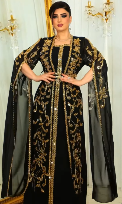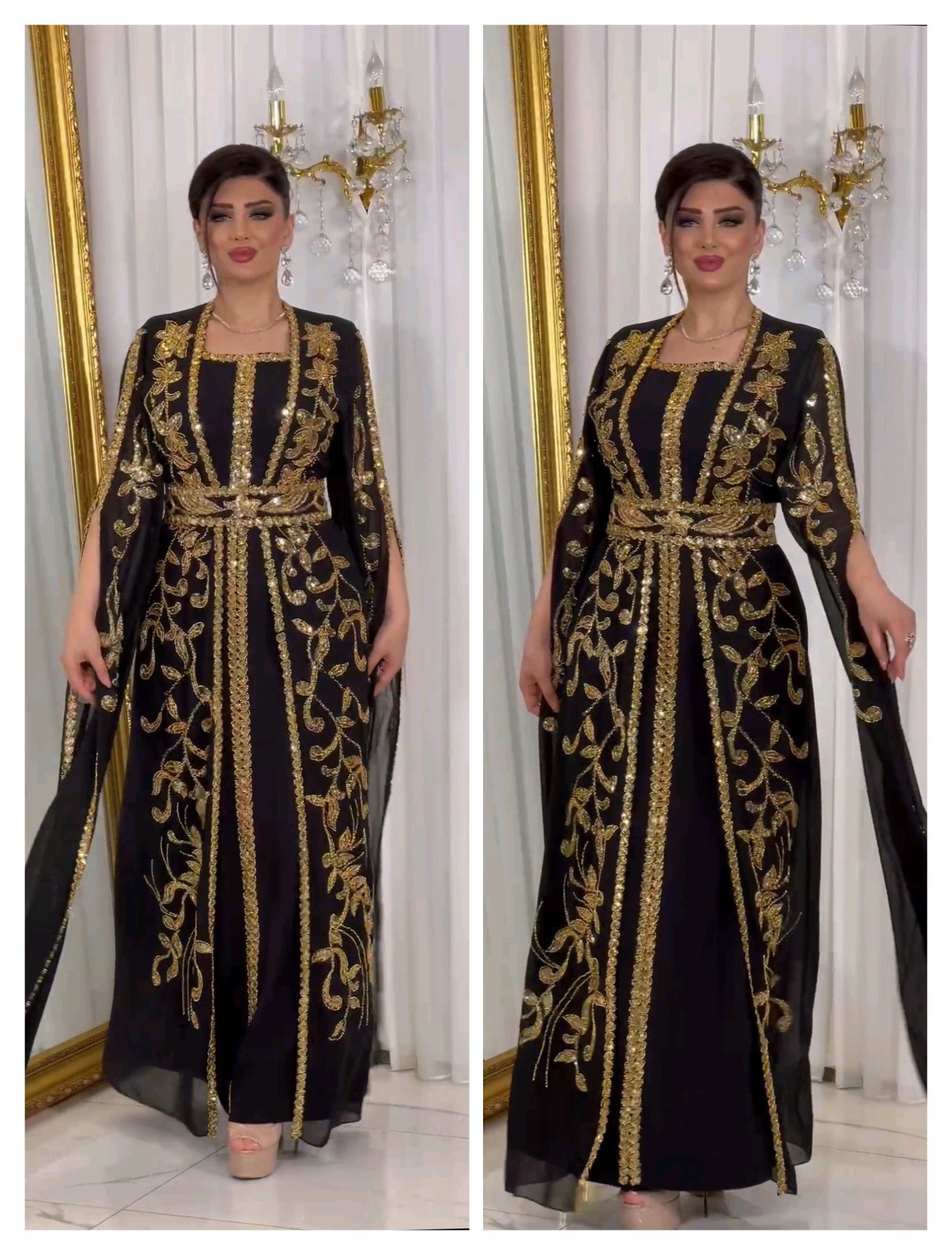 | Product Name | Black and Gold Embroidered Moroccan Kaftan Dress with Belt | |