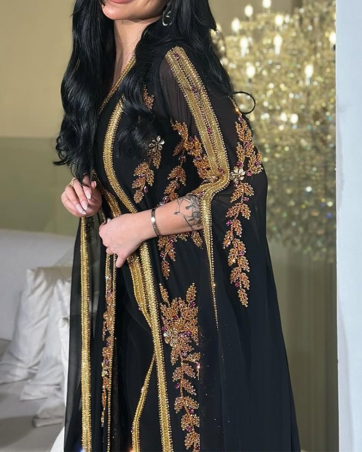 | Product Name | Luxurious Black Gold Embroidered Moroccan Style Kaftan | |