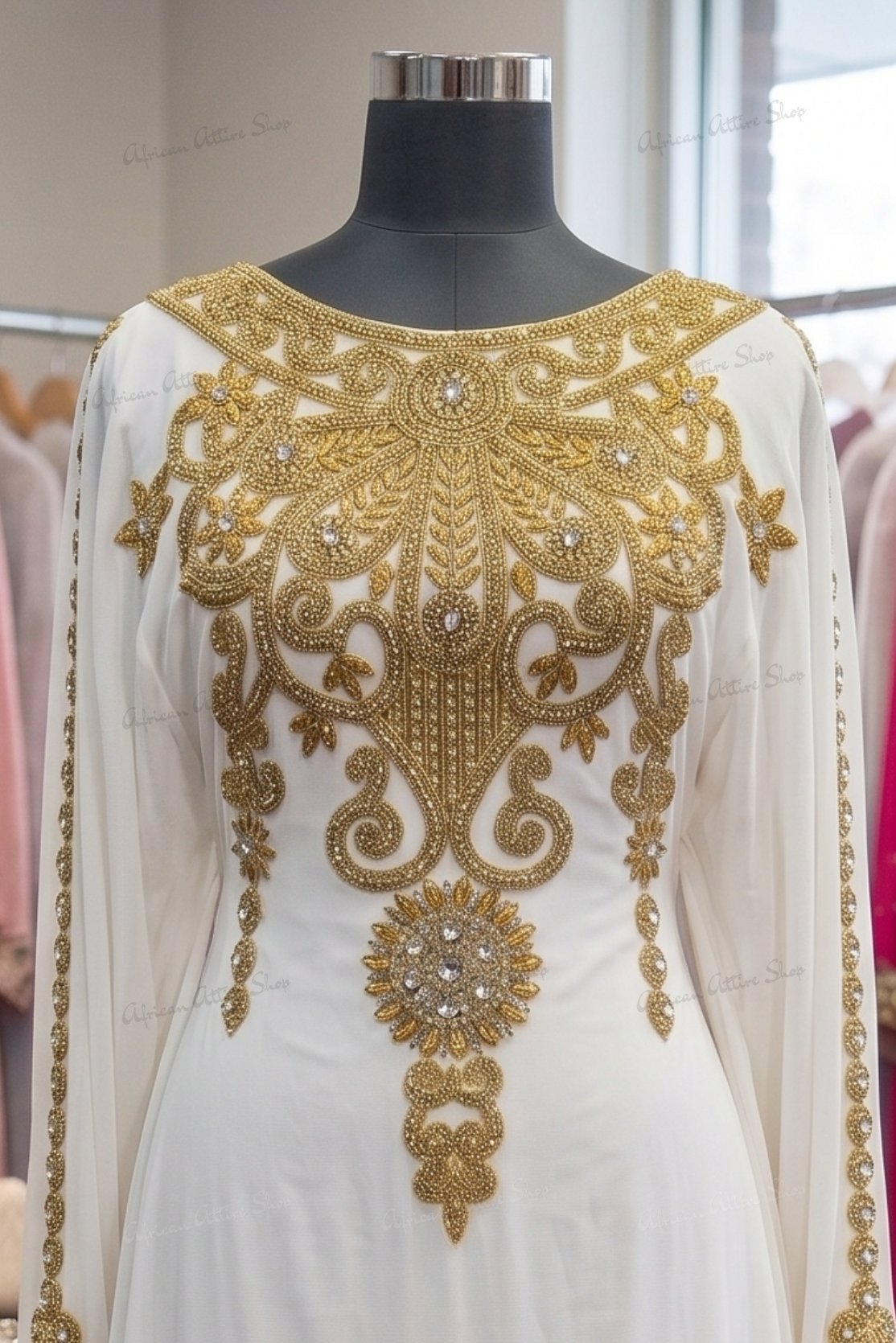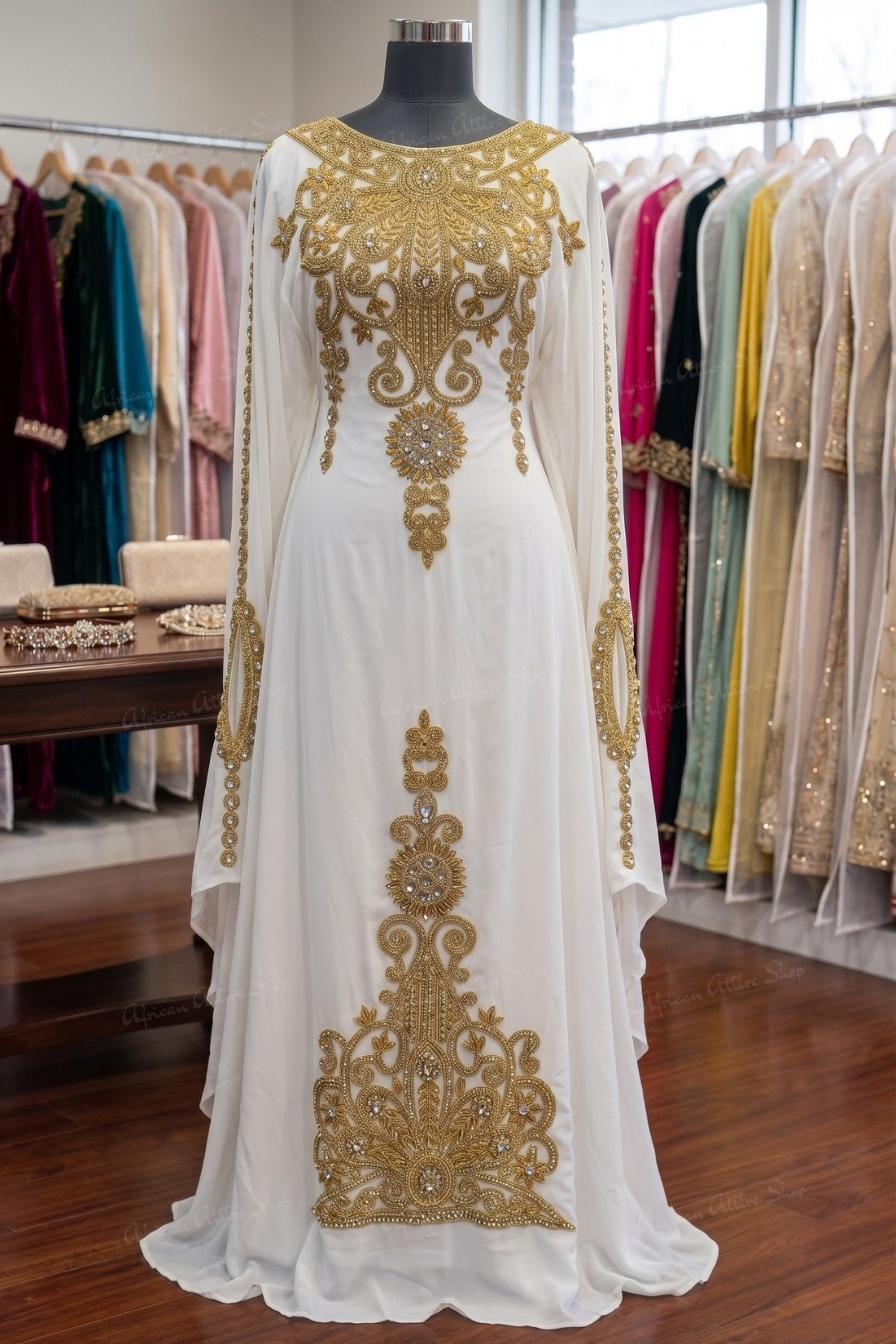 | Product Name | White & Gold Embroidered Moroccan Bridal Kaftan Dress | |
