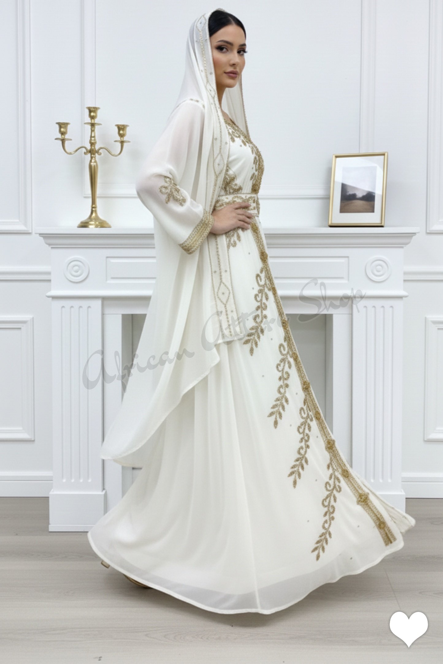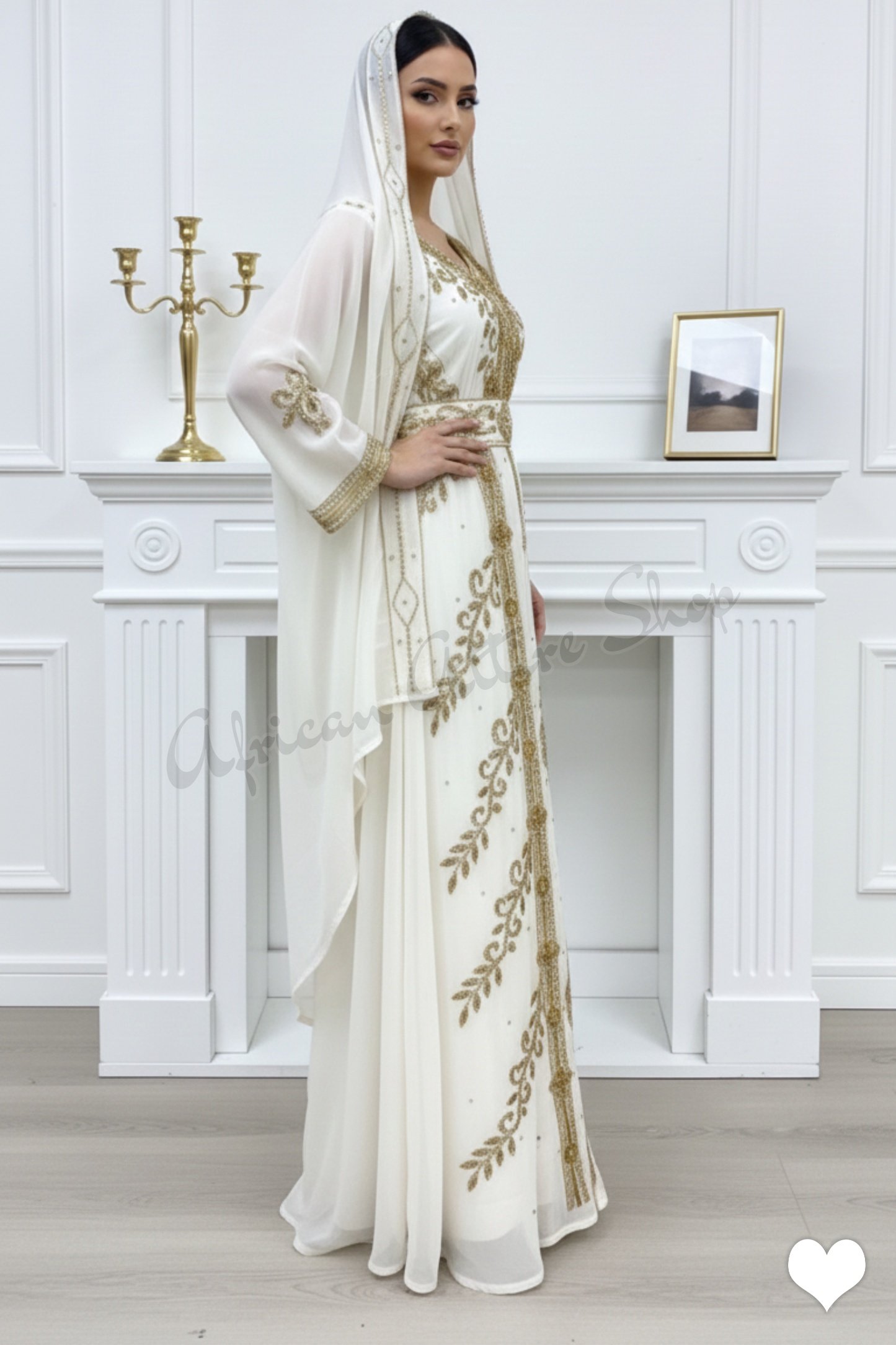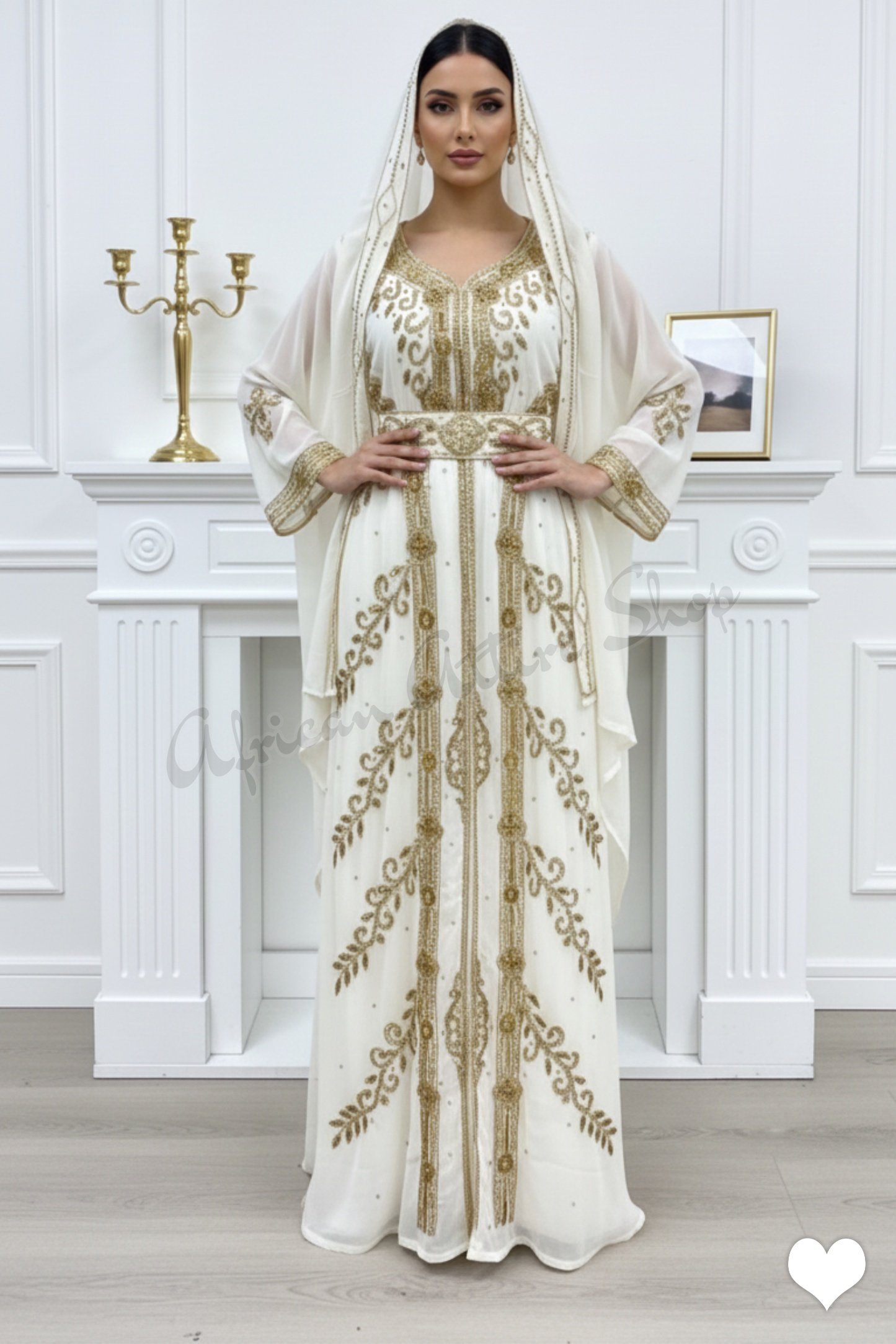 | Product Name | White & Gold Moroccan Bridal Kaftan with Veil | |