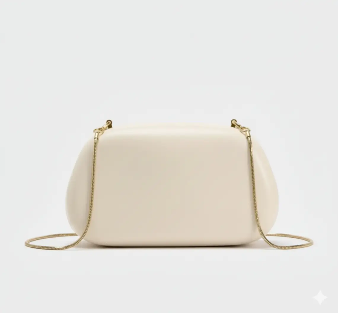 This designer handbag blends luxury and function flawlessly. The bold gold C-shaped closure creates a striking visual contrast against the soft white PU leather body, giving your outfit a sophisticated edge.